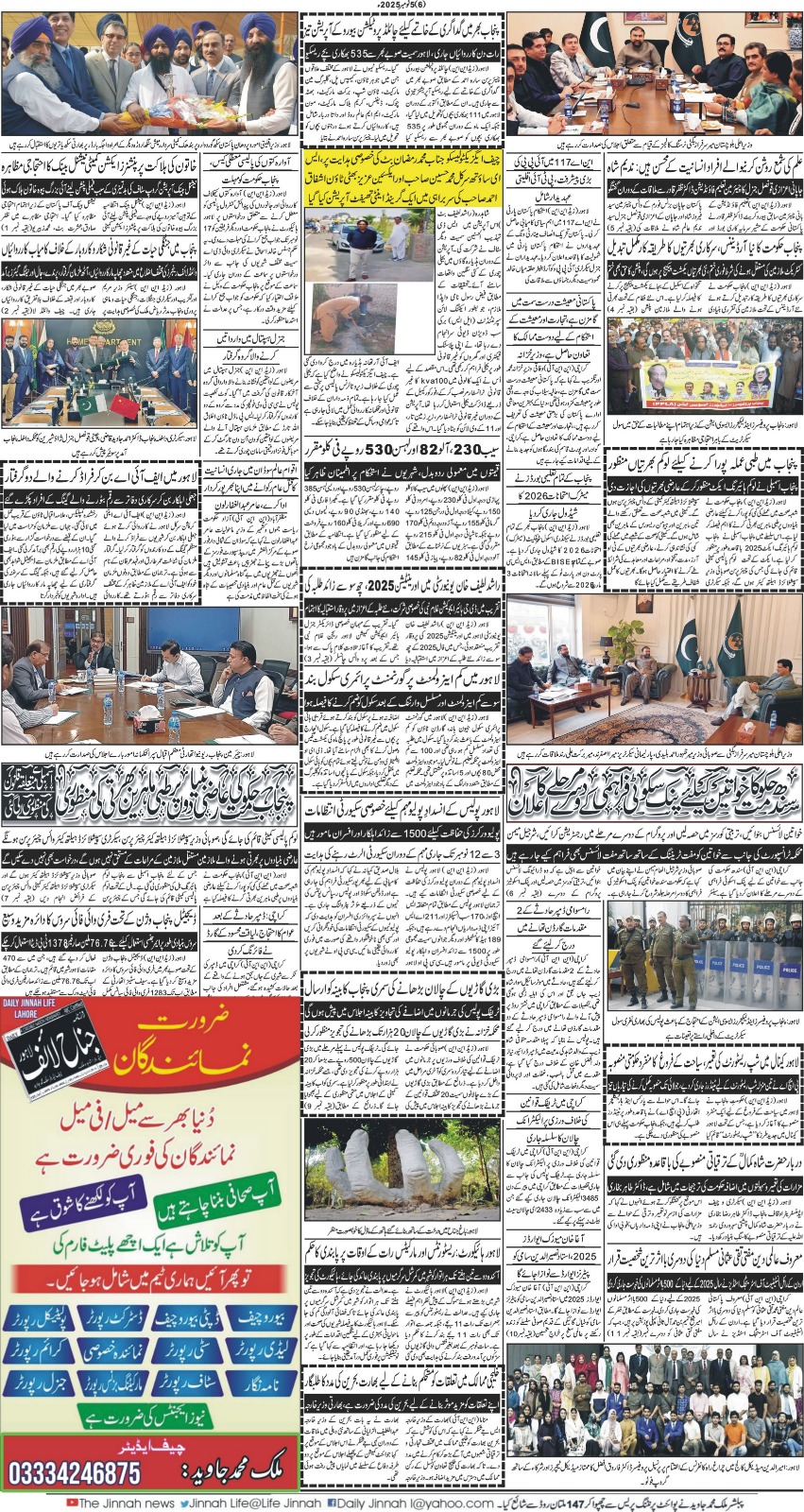 HomeUncategorizedTODAY NEWS PAPER DAILY JINNAH LIFE LAHORE Uncategorized TODAY NEWS PAPER DAILY JINNAH LIFE LAHORE By admin November 4, 2025 0 173 Share FacebookTwitterPinterestWhatsApp TagsDaily Jinnah life LahoreNEWS CENTERS PK Share FacebookTwitterPinterestWhatsApp Previous articleTODAY NEWS PAPER DAILY JINNAH LIFE LAHORENext articleISRAELI TORTURE CELLS EXPOSED— HORRIFYING TRUTH OF PALESTINIAN PRISONERS UNVEILED adminhttp://news.centers.pk RELATED ARTICLES Uncategorized INDIAN DEFENCE CHIEF’S ANTI-PAKISTAN REMARK TRIGGERS MASSIVE KHALISTAN PROTEST IN CANADA December 1, 2025 Uncategorized PRISON HEALTH & REFORMS AGENDA MOVES AHEAD UNDER CM PUNJAB – MAJOR DECISIONS MADE November 28, 2025 Uncategorized $38 BILLION BLACK MONEY MYSTERY ROCKS PAKISTAN — CM AFRIDI’S EXPLOSIVE CLAIMS SHAKE POWER CORRIDORS November 26, 2025 LEAVE A REPLY Cancel reply Comment: Please enter your comment! Name:* Please enter your name here Email:* You have entered an incorrect email address! Please enter your email address here Website: Save my name, email, and website in this browser for the next time I comment. Most Popular RAWALPINDI TRADERS HAIL ASMA ABBASI FOR EFFECTIVE ZERO-DEATH DENGUE CONTROL CAMPAIGN SUCCESS December 4, 2025 PAKISTAN UNEMPLOYMENT CRISIS HITS 21-YEAR HIGH — GOVERNMENT POLICY FAILURES EXPOSED December 1, 2025 CURRENT GOVERNMENT ACCUSED OF FOLLOWING WESTERN AGENDA, POLITICAL TENSIONS ESCALATE ACROSS ISLAMABAD December 1, 2025 PIERZADA MIAN JHANGIR SULTAN BHUTTA FULL POLITICAL RISE FROM LOCAL GOVERNANCE TO PROVINCIAL POWER December 1, 2025 Load more Recent Comments